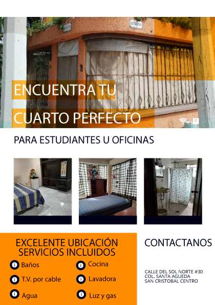 Se renta cuartos para estudiantes, trabajadores o para oficinas, estamos en una excelente ubicación a una cuadra del Mexibús UPE, en San Cristóbal centro, con un costo de $900 a la semana.